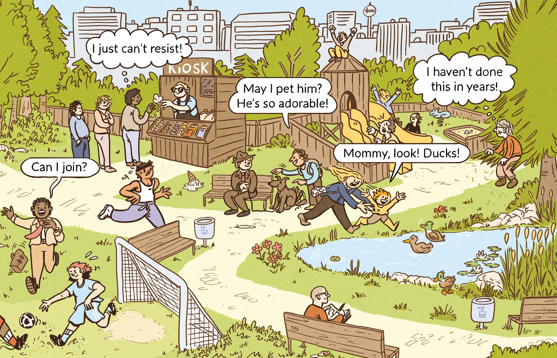 Ziel: Die Aufgabe bestand darin, Illustrationen zu erstellen, die die visuelle Attraktivität des Buches steigern und den Text ergänzen. Jedes Bild wurde so gestaltet, dass es die Erzählung unterstützt, ohne sie zu überlagern, wobei der Schwerpunkt auf der Komposition und der emotionalen Wirkung lag. Die Illustrationen dienen nicht als dekorative Details, sondern sollen Emotionen und subtile Geschichten, einschliesslich Humor, vermitteln.