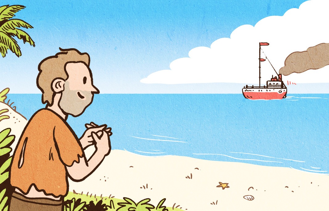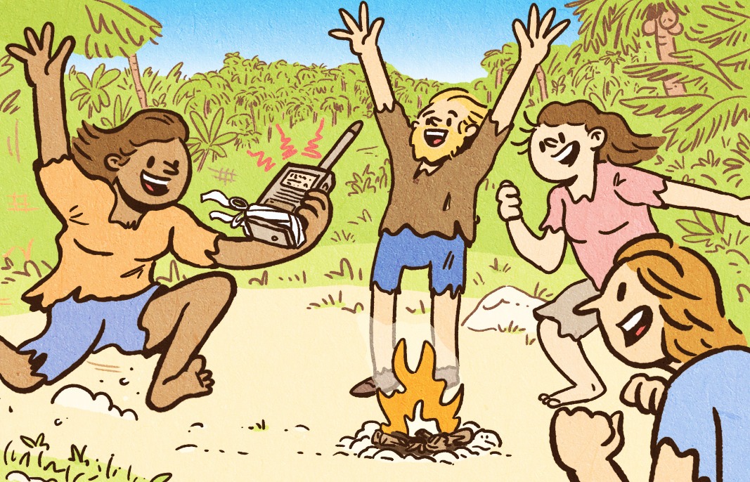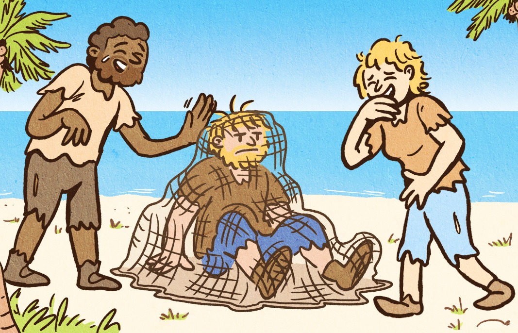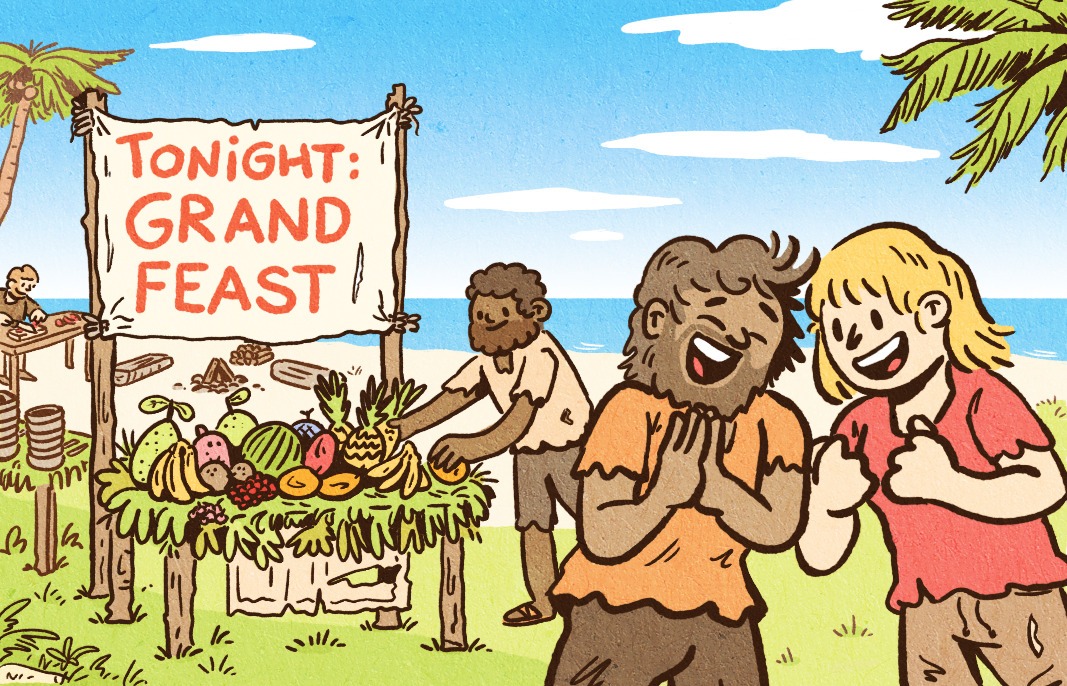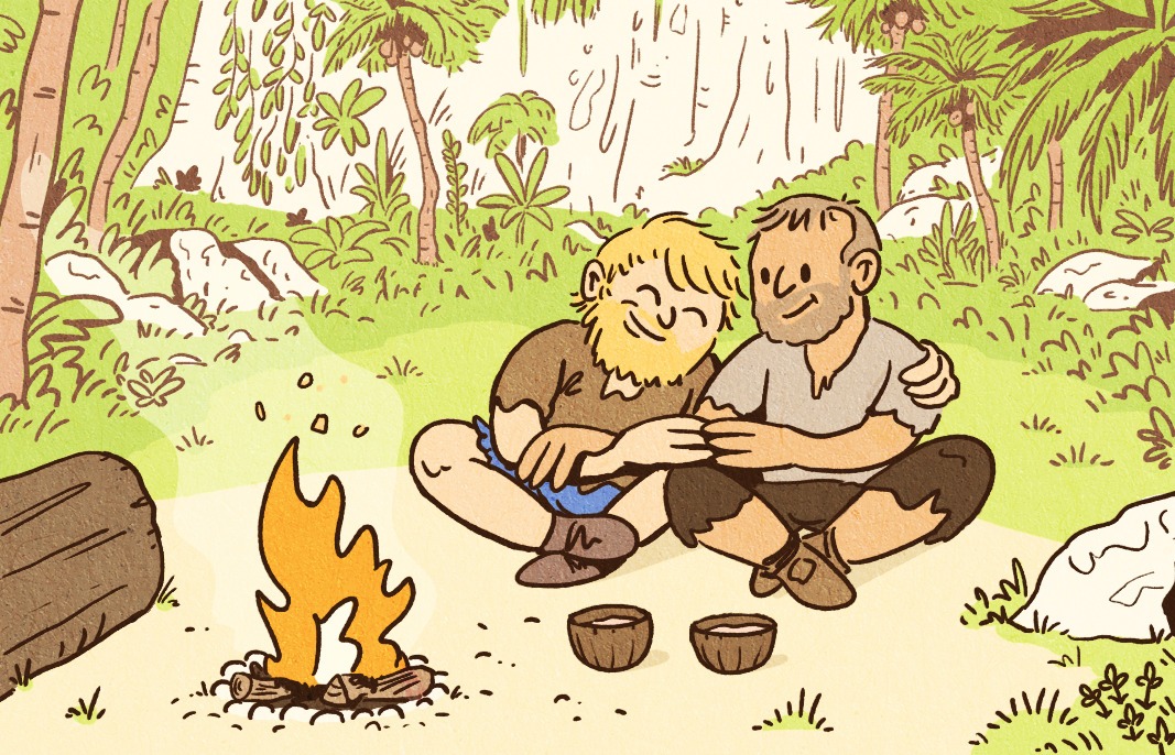Ziel: Die Aufgabe bestand darin, jede Emotion sofort sichtbar und leicht verständlich zu machen. Starke, klare Kompositionen waren unerlässlich, damit die Bilder auch isoliert betrachtet werden konnten. Die Illustrationen spielten auf einer tropischen Insel, auf der Menschen gestrandet waren, und lieferten so die visuelle Erzählung.