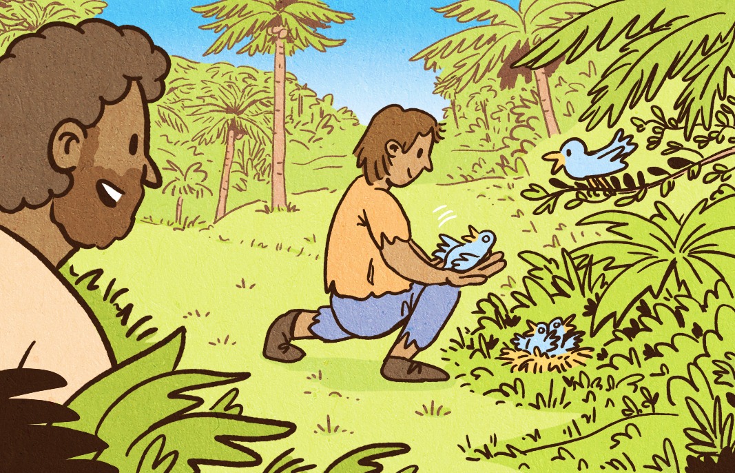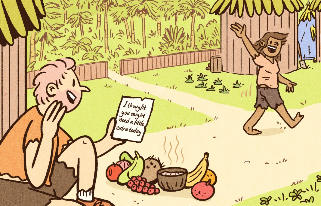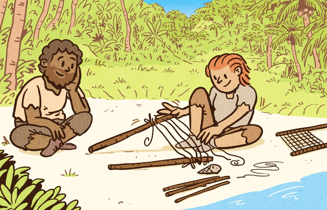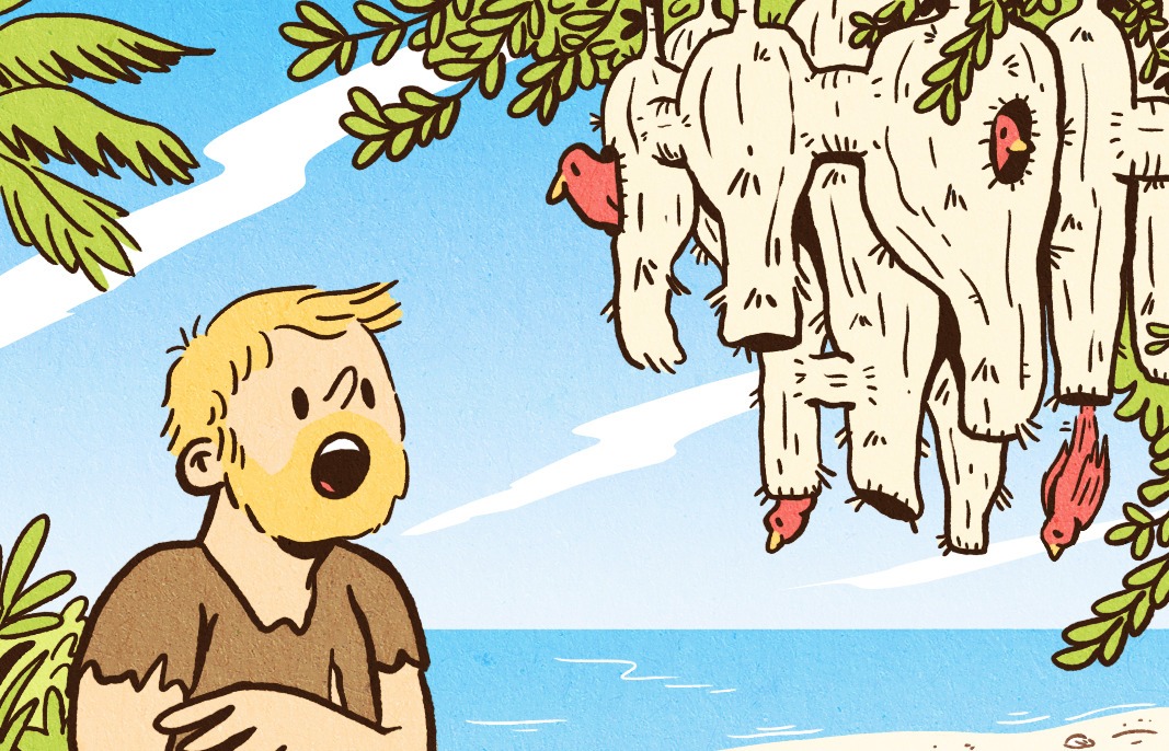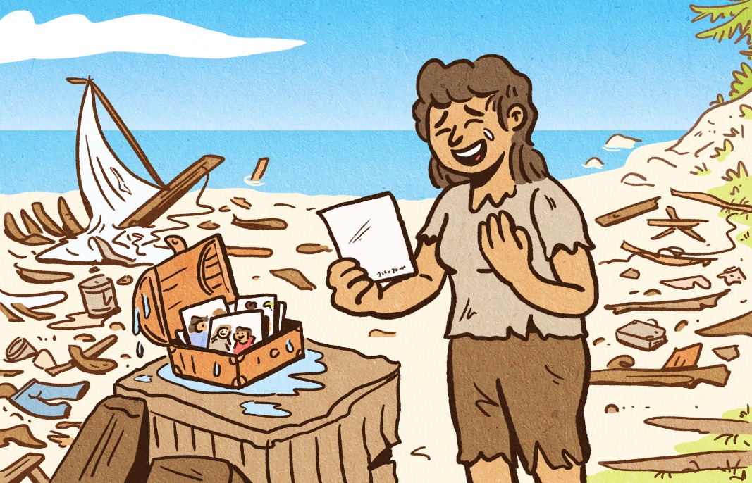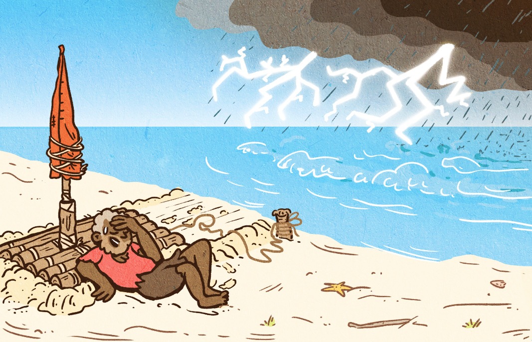 Ziel: Die Aufgabe bestand darin, jede Emotion sofort sichtbar und leicht verständlich zu machen. Starke, klare Kompositionen waren unerlässlich, damit die Bilder auch isoliert betrachtet werden konnten. Die Illustrationen spielten auf einer tropischen Insel, auf der Menschen gestrandet waren, und lieferten so die visuelle Erzählung.