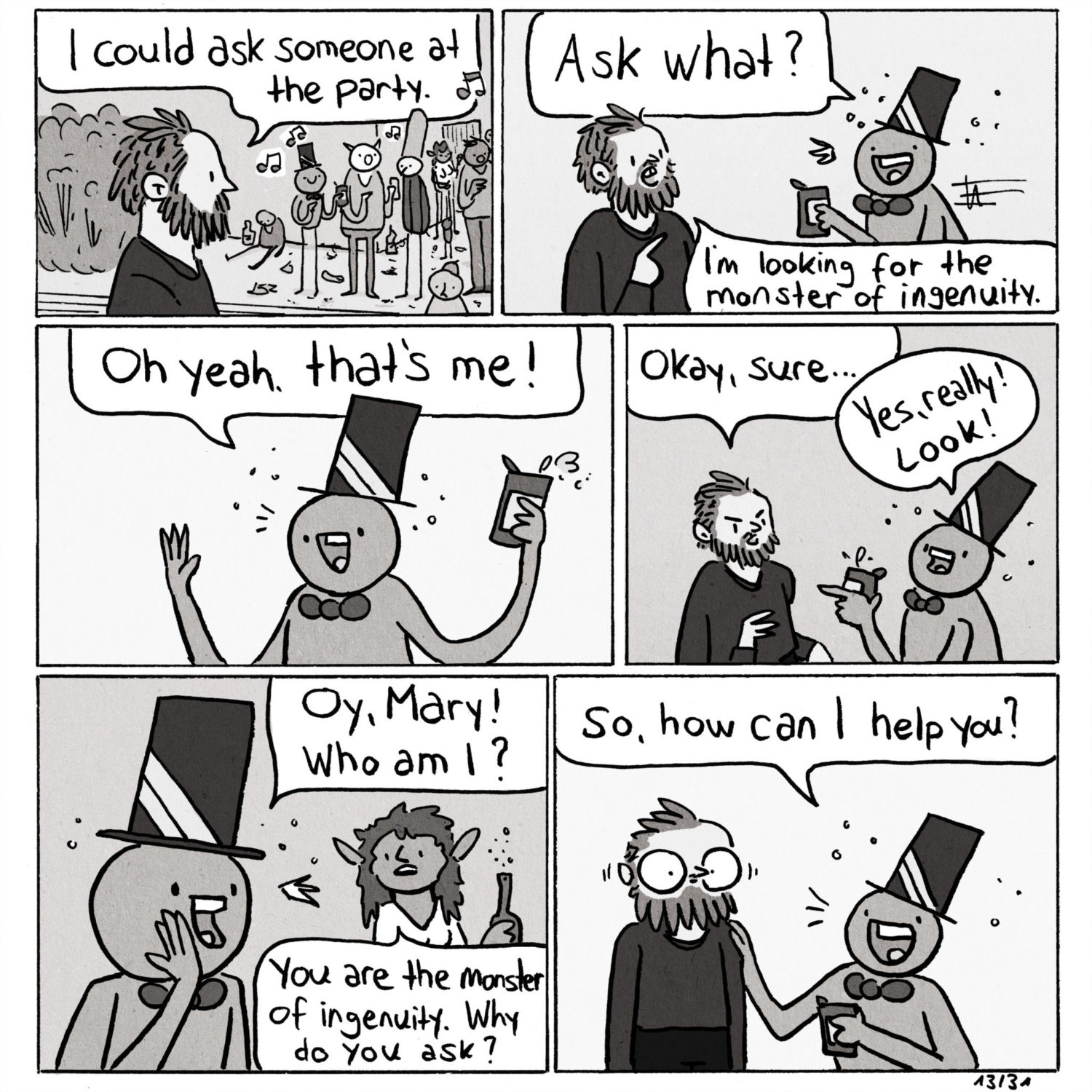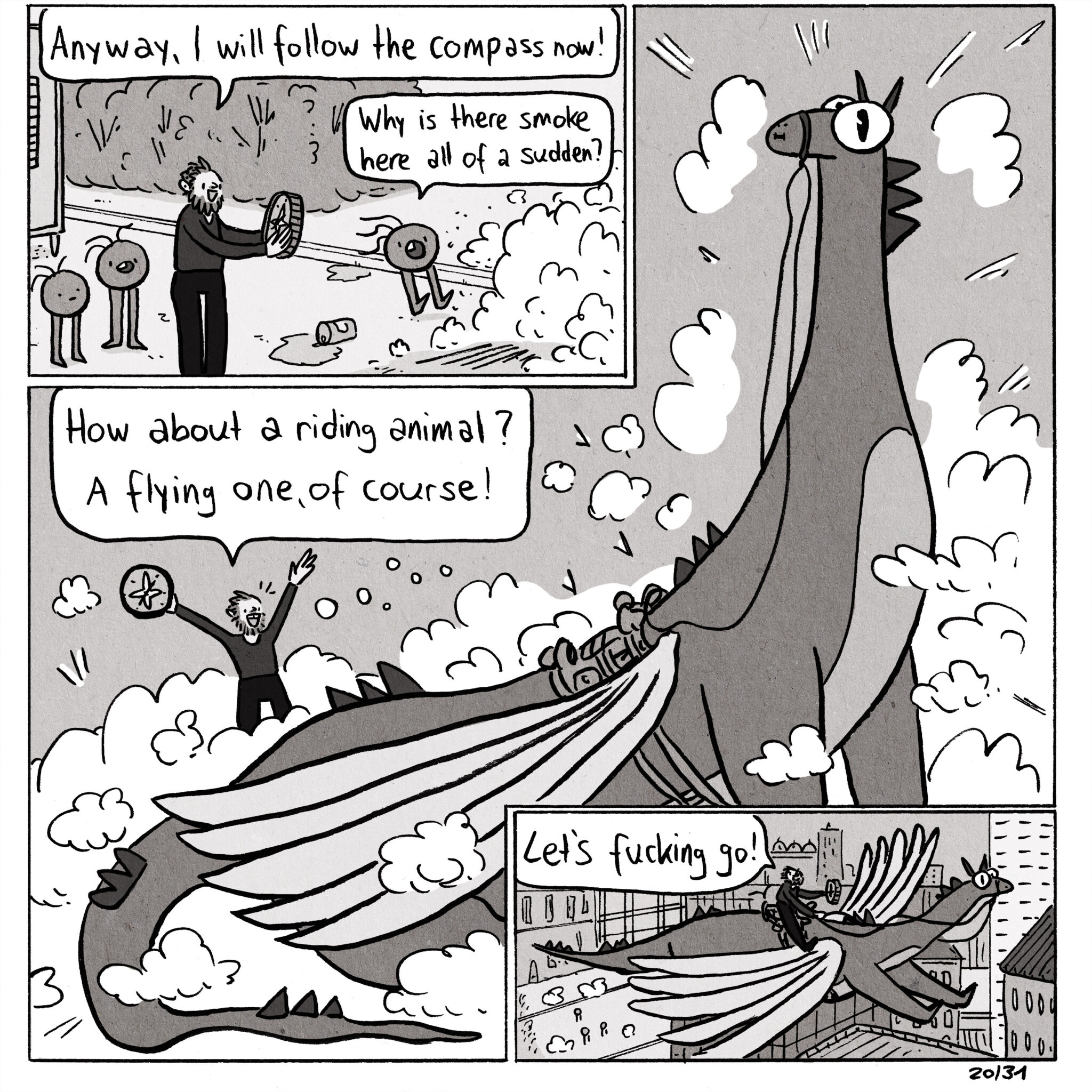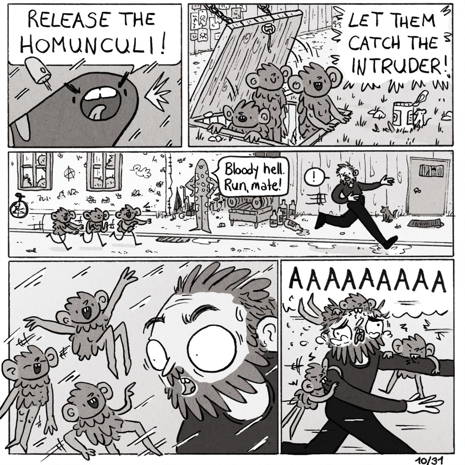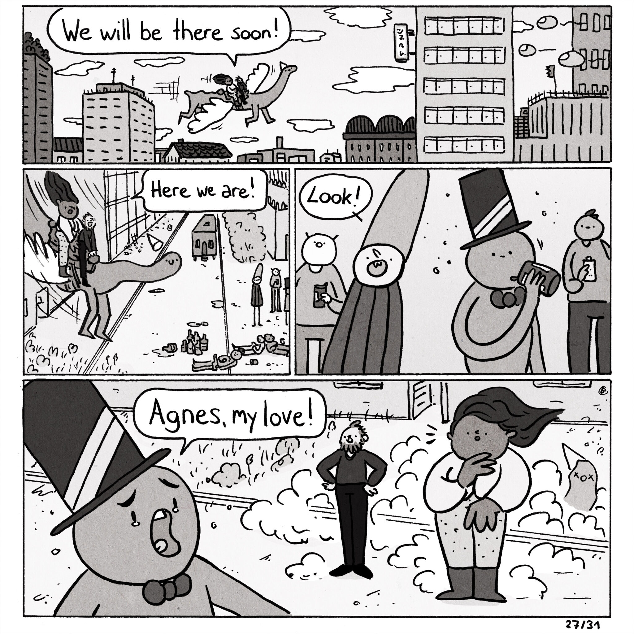 Beschreibung: „The Stolen Imagination“ ist ein absurder Comic über eine Welt, die von der Fantasie lebt. Während Inktober entstand jeden Tag eine Seite.