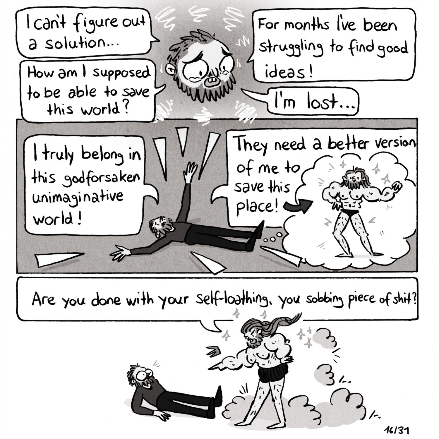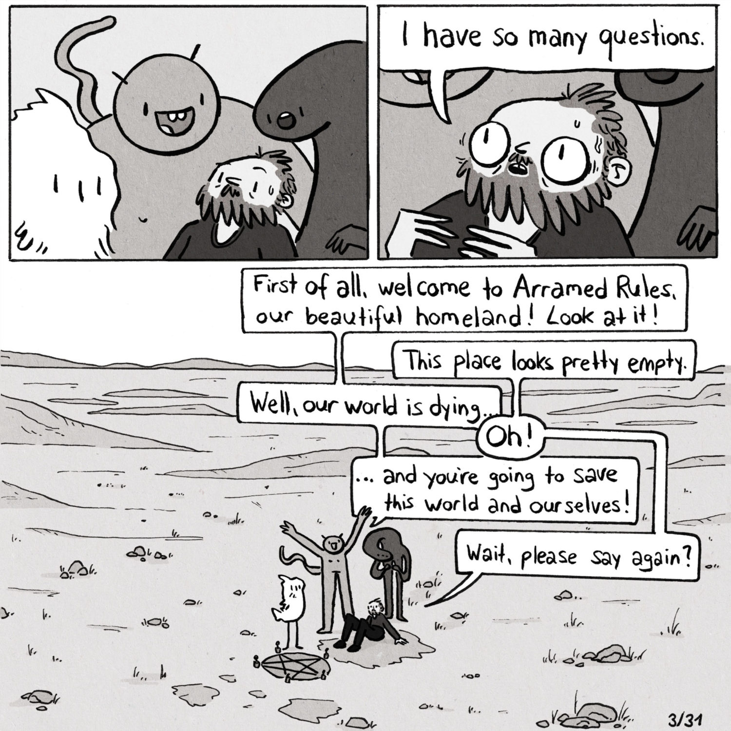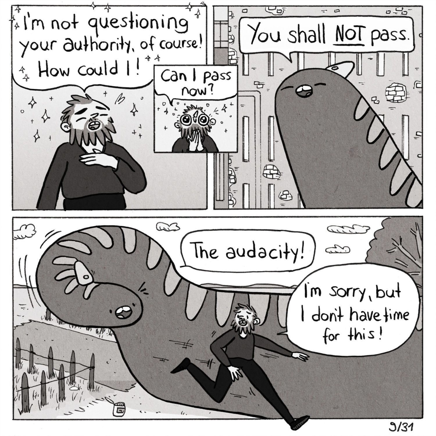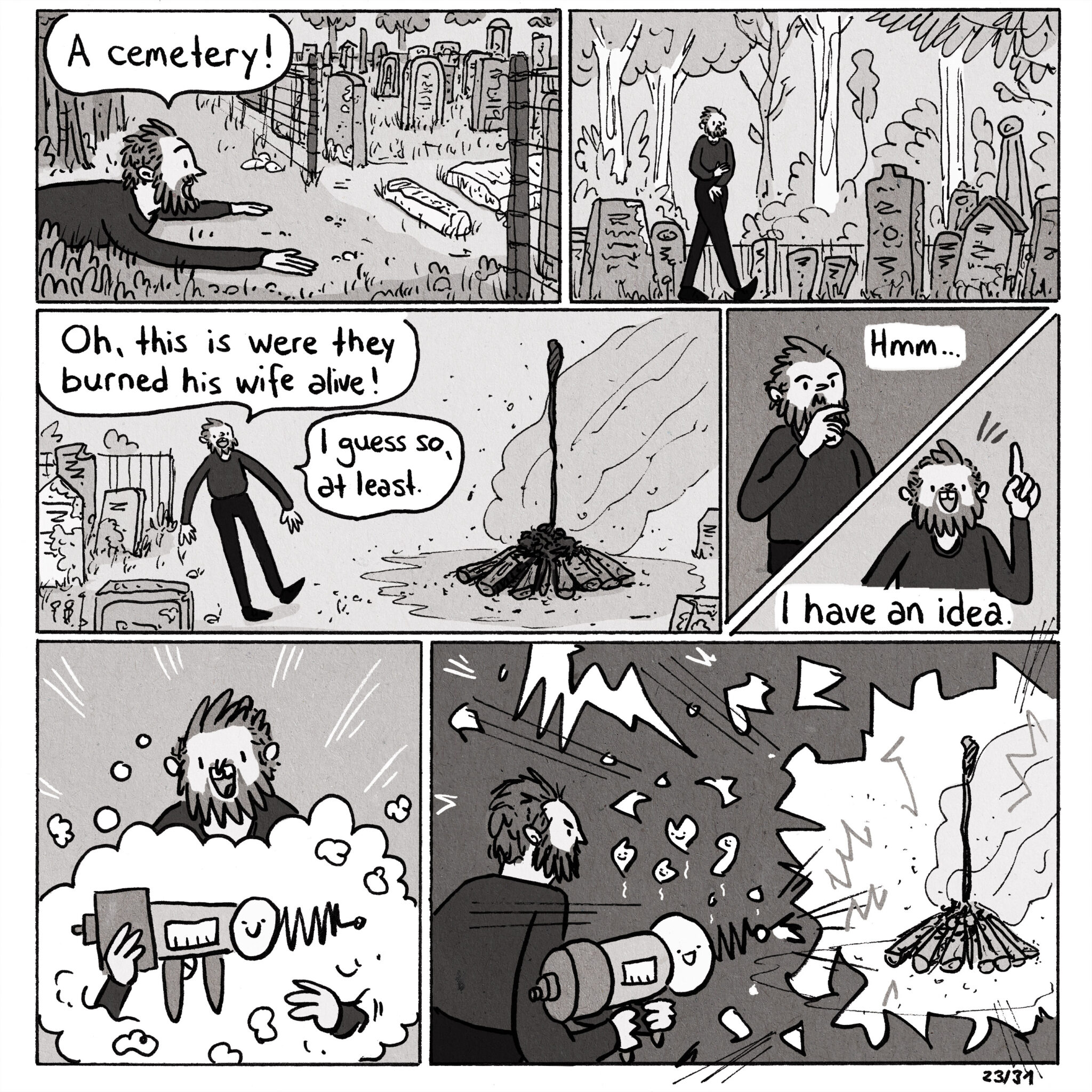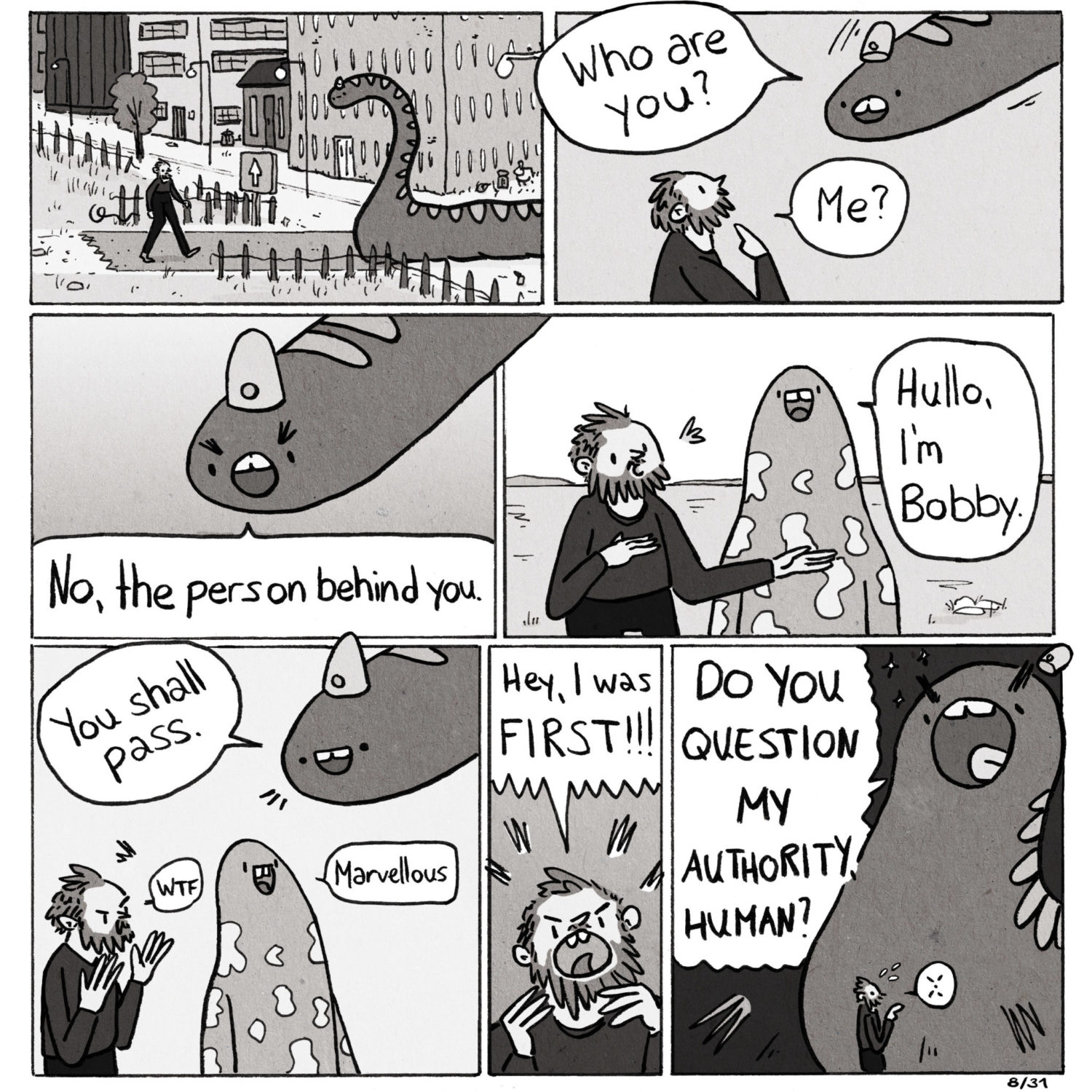 Beschreibung: „The Stolen Imagination“ ist ein absurder Comic über eine Welt, die von der Fantasie lebt. Während Inktober entstand jeden Tag eine Seite.