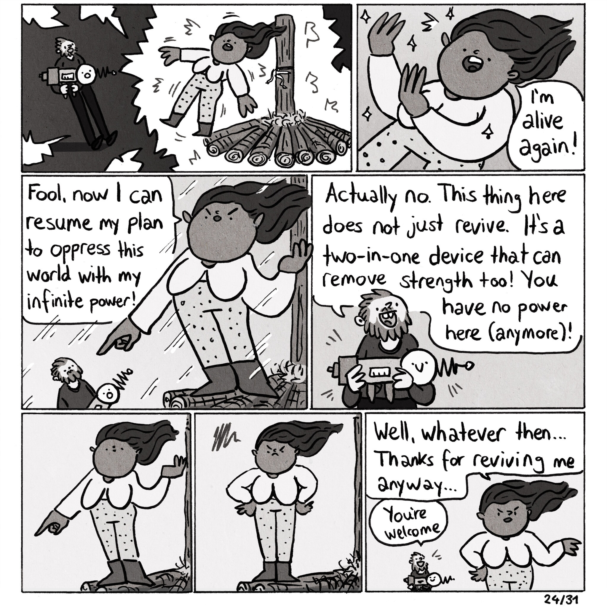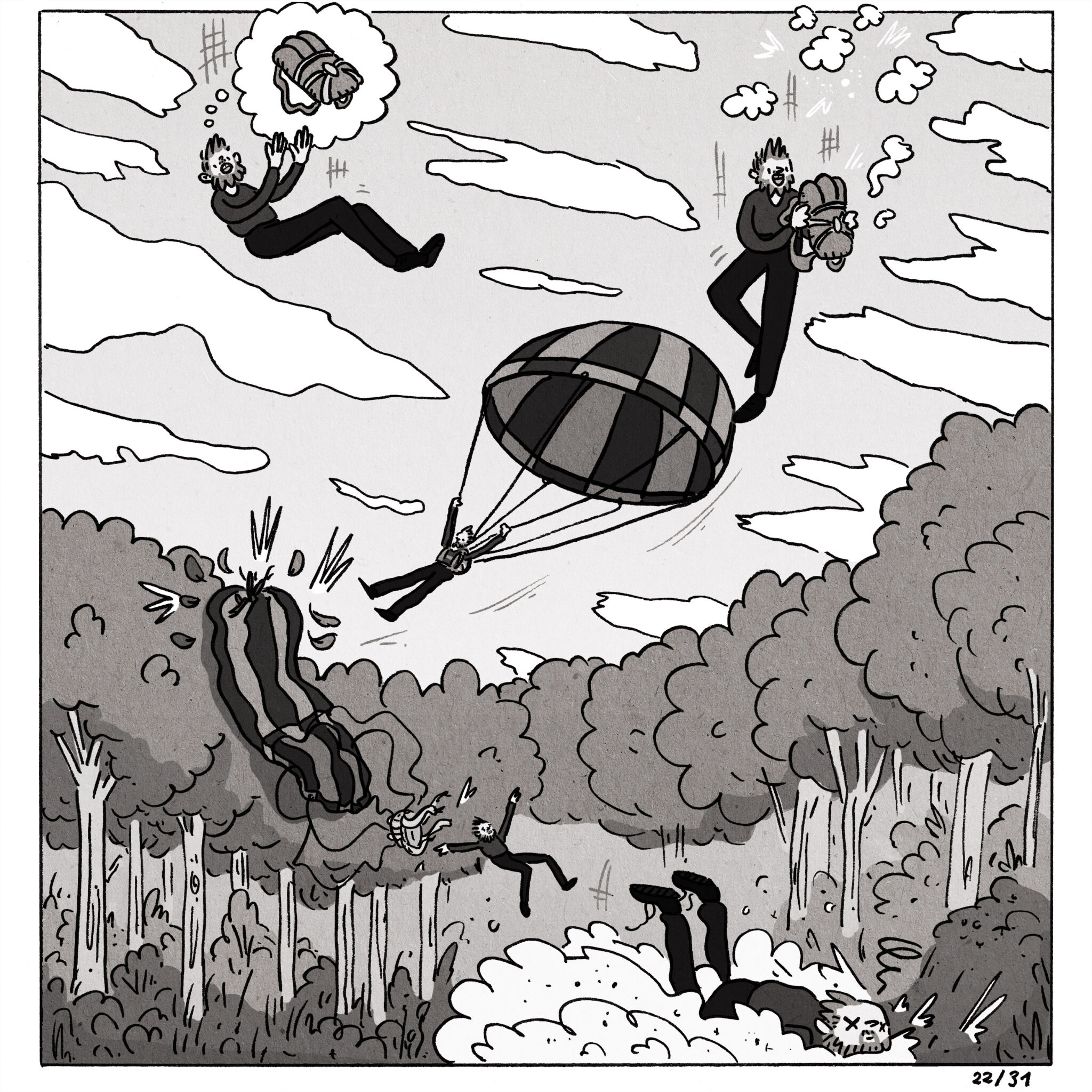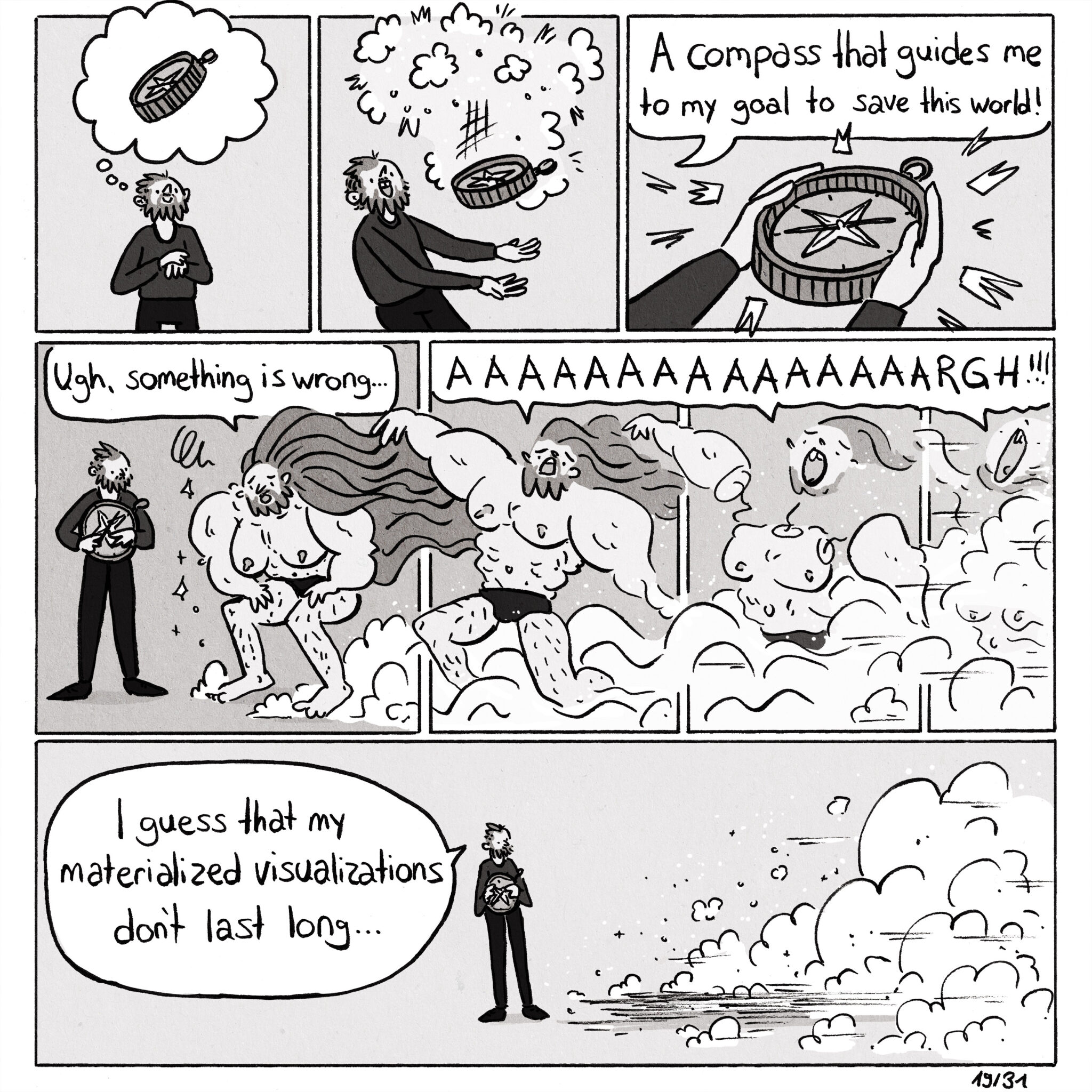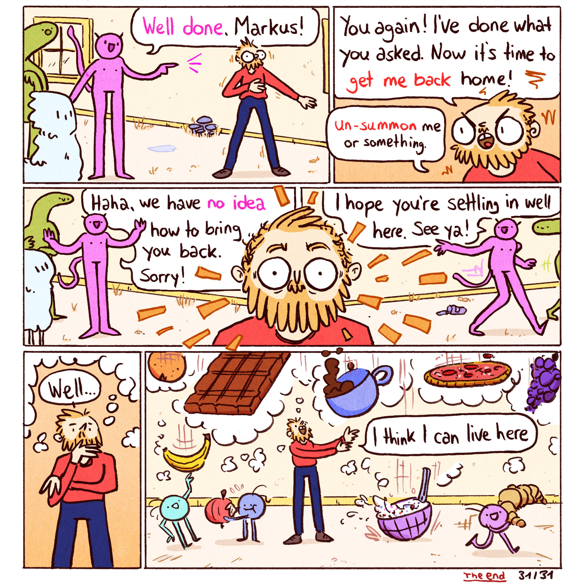 Beschreibung: „The Stolen Imagination“ ist ein absurder Comic über eine Welt, die von der Fantasie lebt. Während Inktober entstand jeden Tag eine Seite.