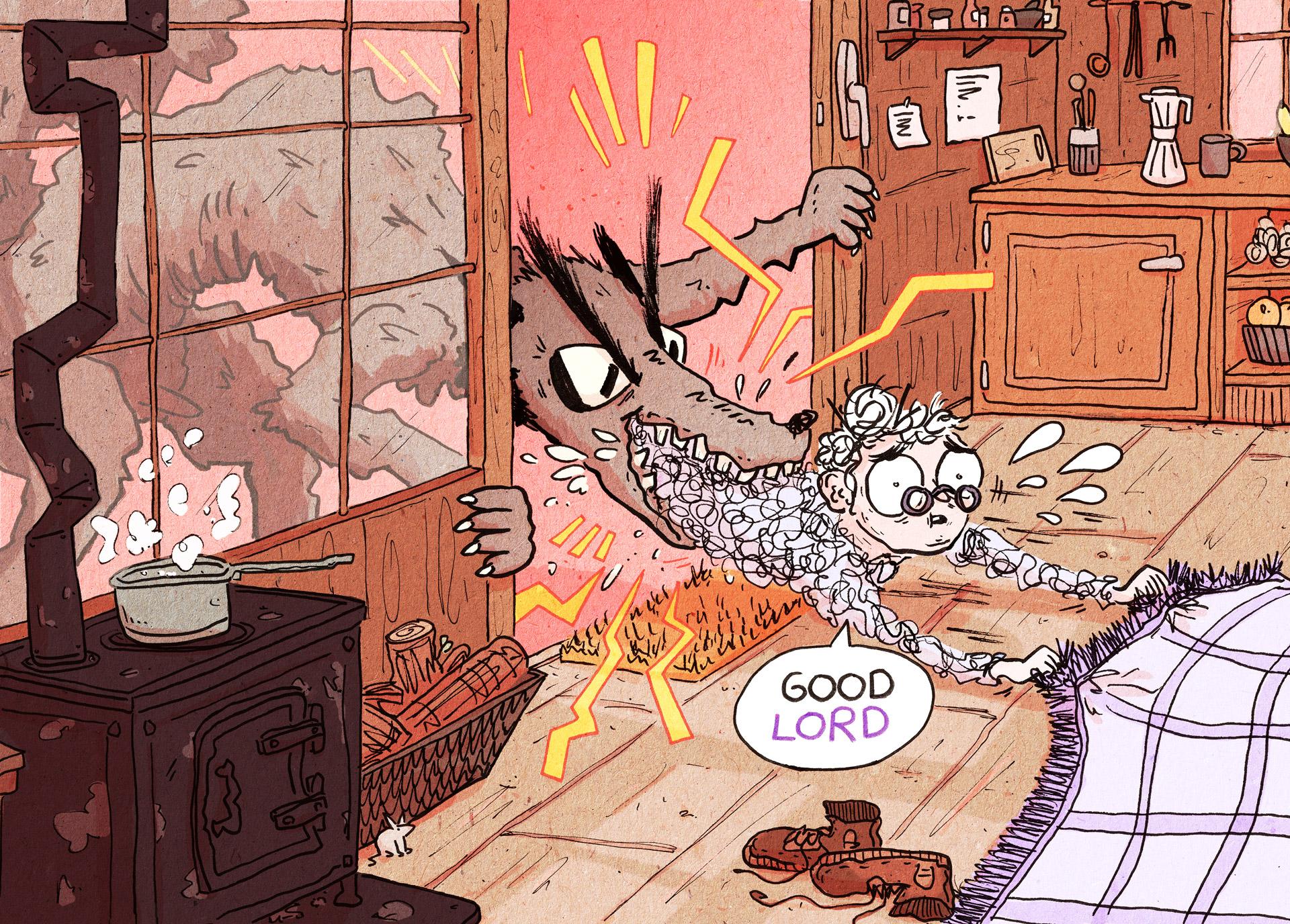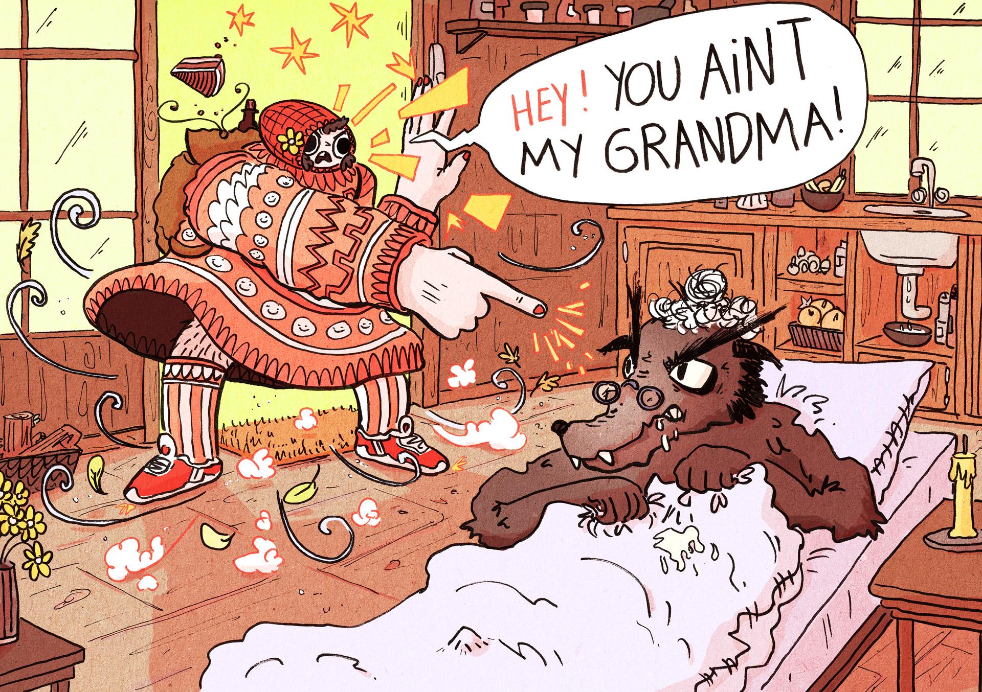 Ziel: Die Aufgabe bestand darin, eine einzigartige und modernisierte Version des klassischen Märchens Rotkäppchen mit Illustrationen voller Action, Spass und Chaos zu schaffen.