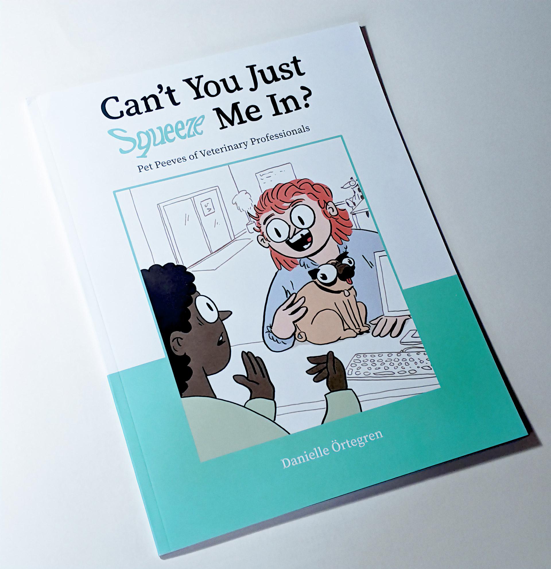Beschreibung: Eine kleine Auswahl von Illustrationen aus dem 27-seitigen Buch „Can’t You Just Squeeze Me In?“. Die Illustrationen zeigen Szenen aus einer Tierarztpraxis mit Hunden und Katzen.